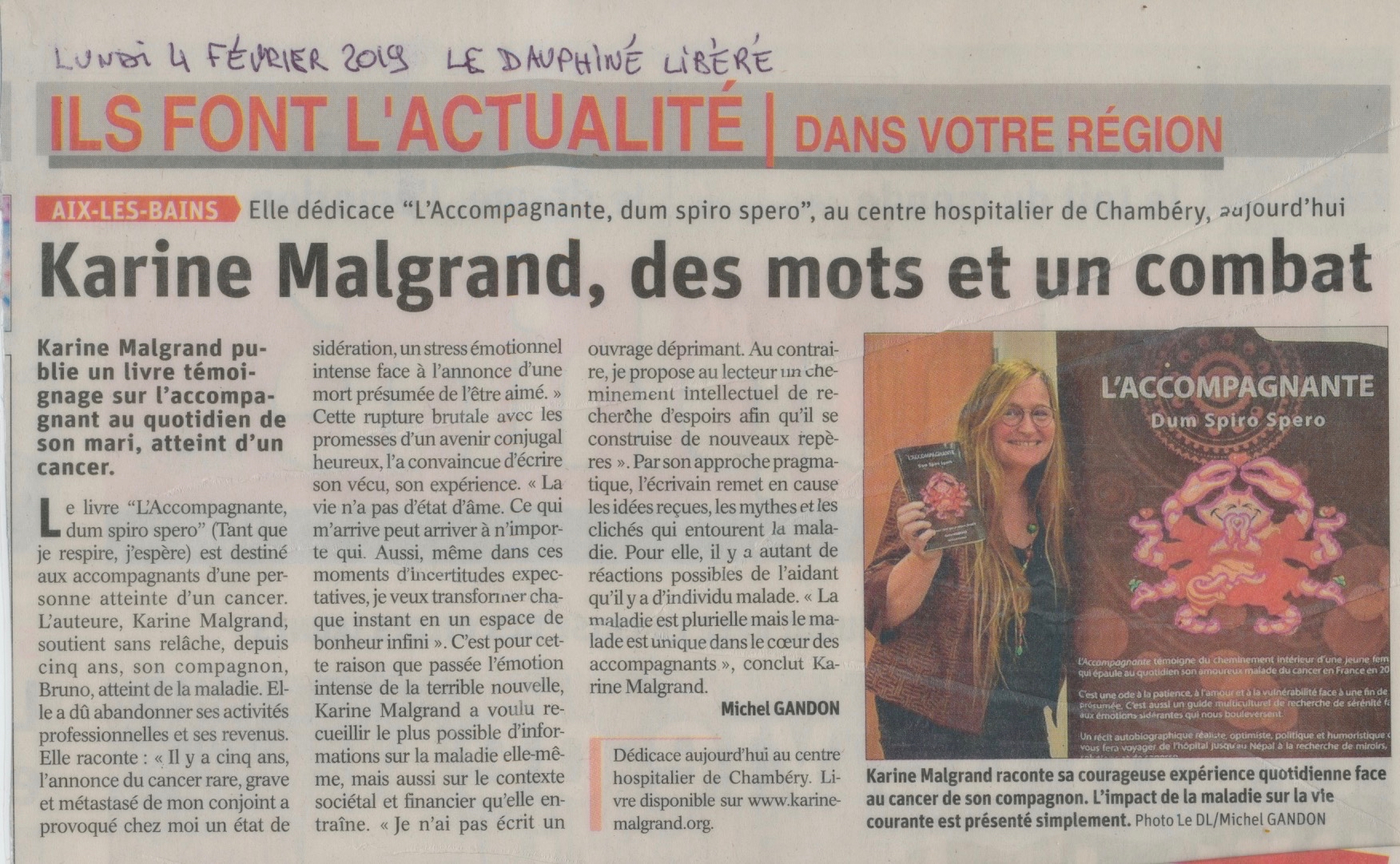Karine Malgrand, auteur du livre « l’accompagnante, dum spiro spero »